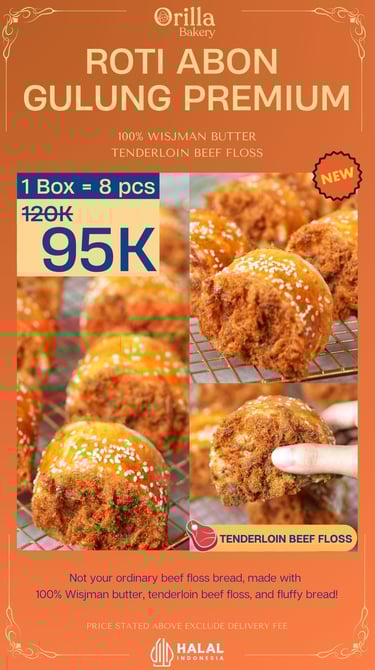 Dibuat dengan 100% Wisjman butter, abon sapi tenderloin pilihan, dan roti super fluffy yang bikin tiap gigitan nggak terlupakan.