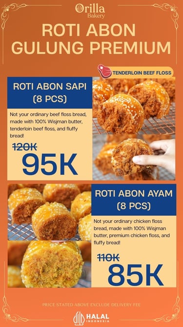 Dibuat dengan 100% Wisjman butter, abon sapi tenderloin pilihan, dan roti super fluffy yang bikin tiap gigitan nggak terlupakan.
