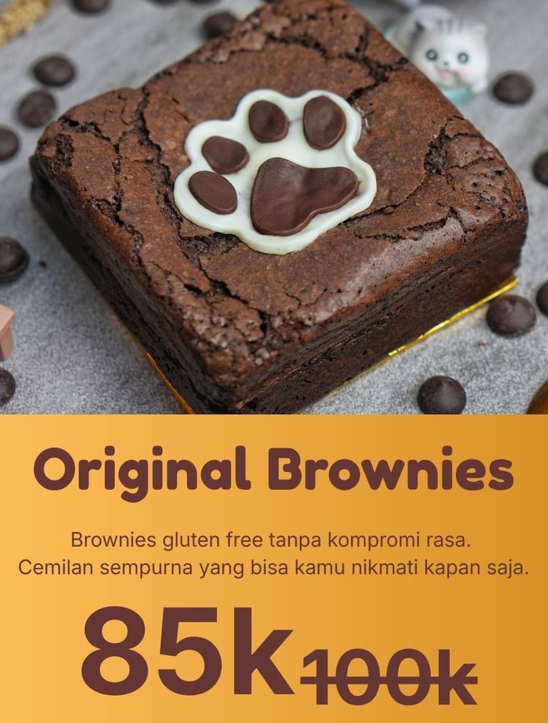 Dibuat gluten-free tanpa mengorbankan tekstur fudgy dan rasa cokelat yang kaya seperti brownies premium pada umumnya.